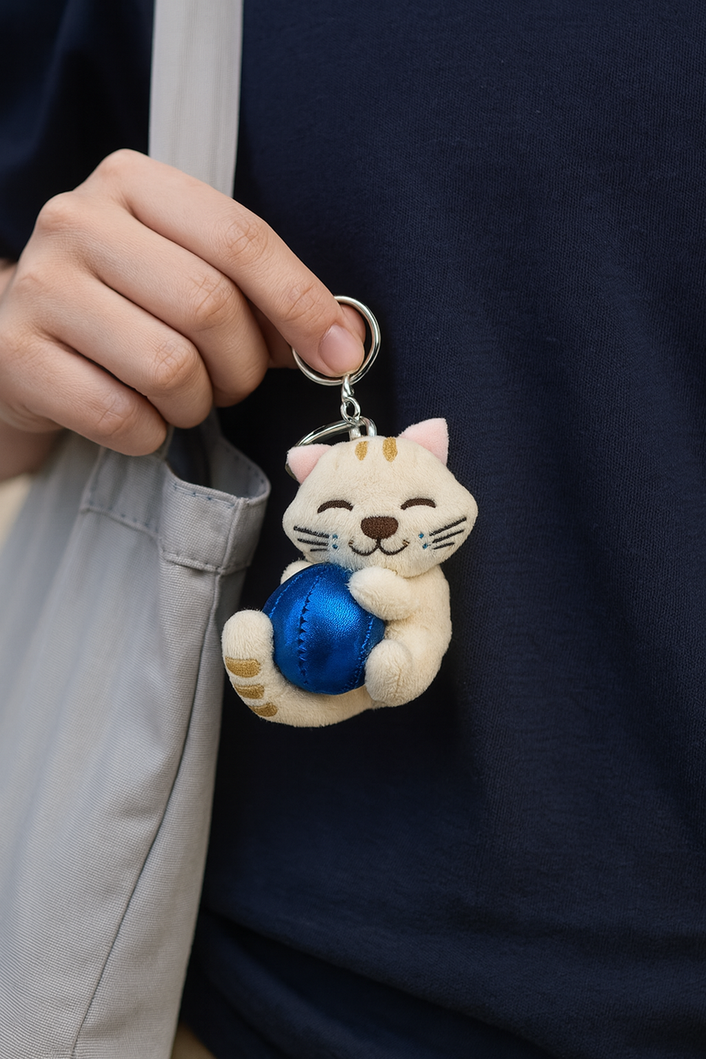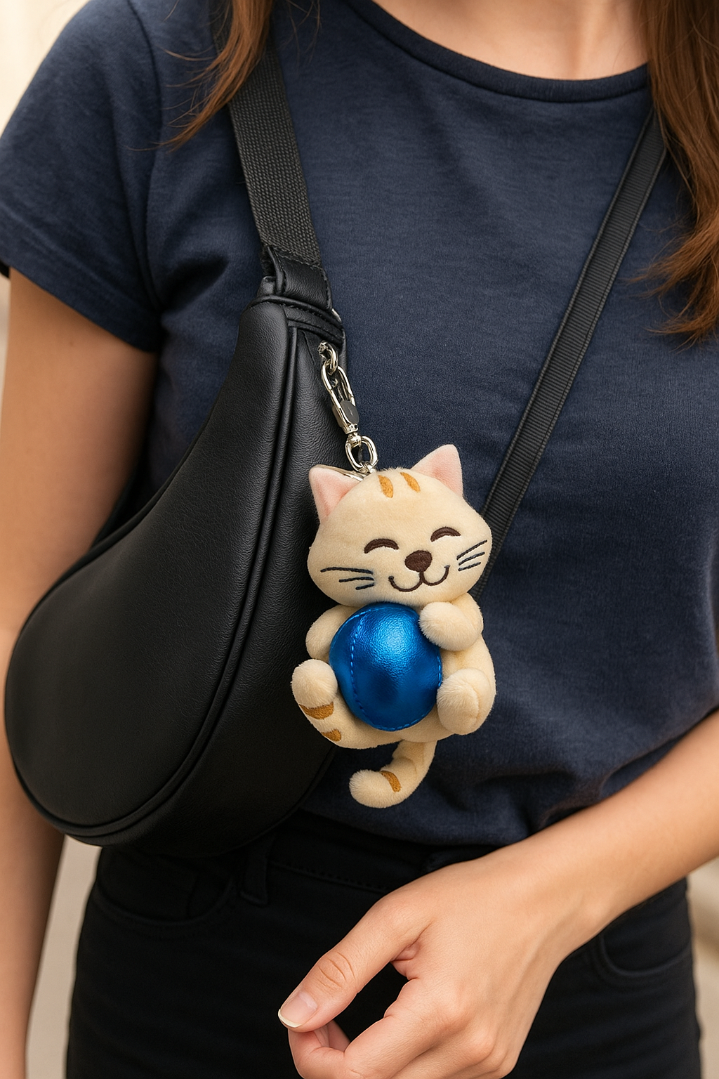 Este adorable llavero de 10 cm de altura está inspirado en nuestro icónico gatito abrazando una perla, y ahora cobra vida en una suave figura de peluche que cabe en la palma de tu mano.